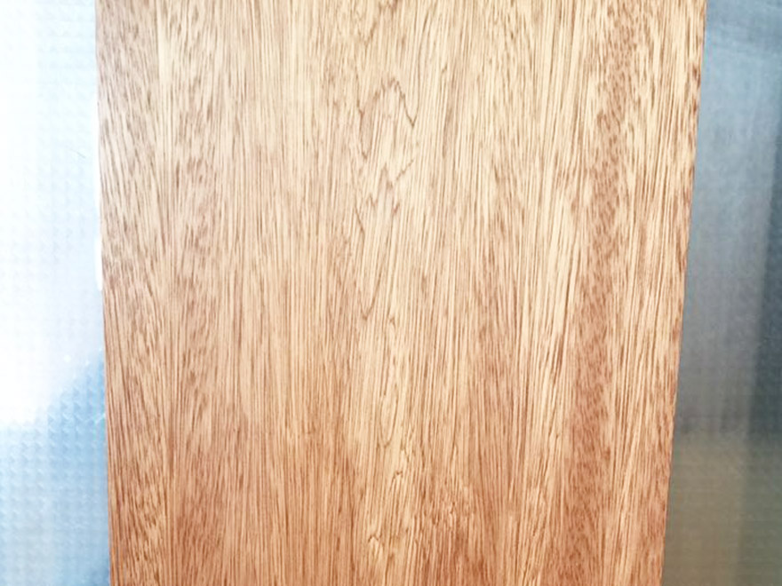 常綠喬木,高約40m,直徑0.6~1.5m,原木常見脆心。材表常留有淡黃色樹液。本屬約有100種,分布于東南亞、南太平洋、馬達加斯加和南美洲等地區(qū),主要從馬來西亞、巴布亞新幾內(nèi)亞、印尼進口,量大。 樹皮:很厚,有時達4cm,不易剝離。外皮較硬;較厚;灰白色至灰褐色;具縱裂溝,較深較寬;易薄片狀剝落。內(nèi)皮紅棕色;韌皮纖維發(fā)達;石細胞發(fā)達;層狀排列。 橫截面:心邊材區(qū)別明顯。心材玫瑰紅色至紅褐色,具有褐色細條紋。邊材淺黃或淺灰褐色,窄。生長輪略可見。 宏觀構(gòu)造:散孔材。管孔肉眼下明顯;略少,單管孔;呈斜列或徑列;含深色樹膠。軸向薄壁組織放大鏡下明顯,離管帶狀,斷續(xù)而稀疏,不均勻。木射線放大鏡下略見,略密,甚窄。 木材材性光澤強;花紋美麗。紋理交錯;導(dǎo)管粗獷,做產(chǎn)品立體感整體效果較強,穩(wěn)定性中等;握釘力強,結(jié)構(gòu)粗;重量和強度中等;硬度略高;干縮大。鋸、刨容易,易起毛和撕裂;油漆、拋光和膠黏性能良好;略難釘釘;略耐腐。干燥宜慢,易開裂、翹曲。 木材用途一般適用于門窗、家具、工藝品、木門等。